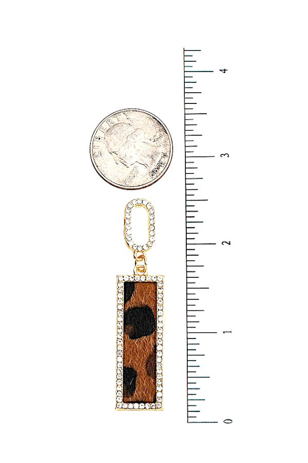 RHINESTONE PAVE ANIMAL PRINT BAR DANGLE EARRING , APPROX LENGTH: 2 1/2"