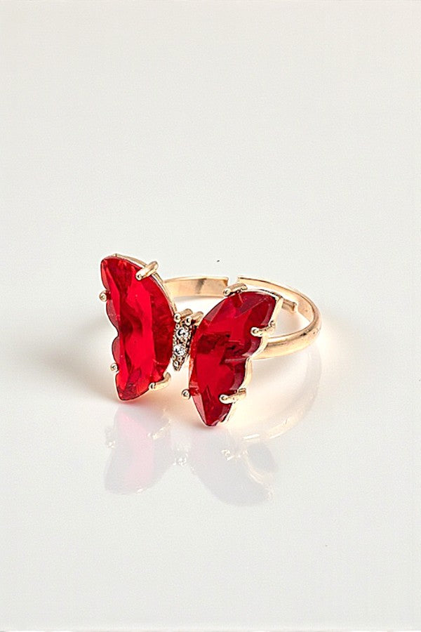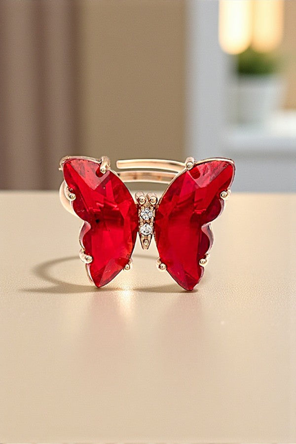 CLEAR GEM BUTTERFLY ADJUSTABLE RING