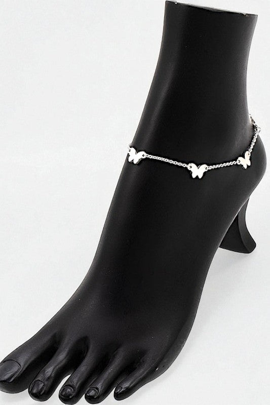 BUTTERFLY ACCENT LINK CHAIN ANKLET , CLASP CLOSURE
