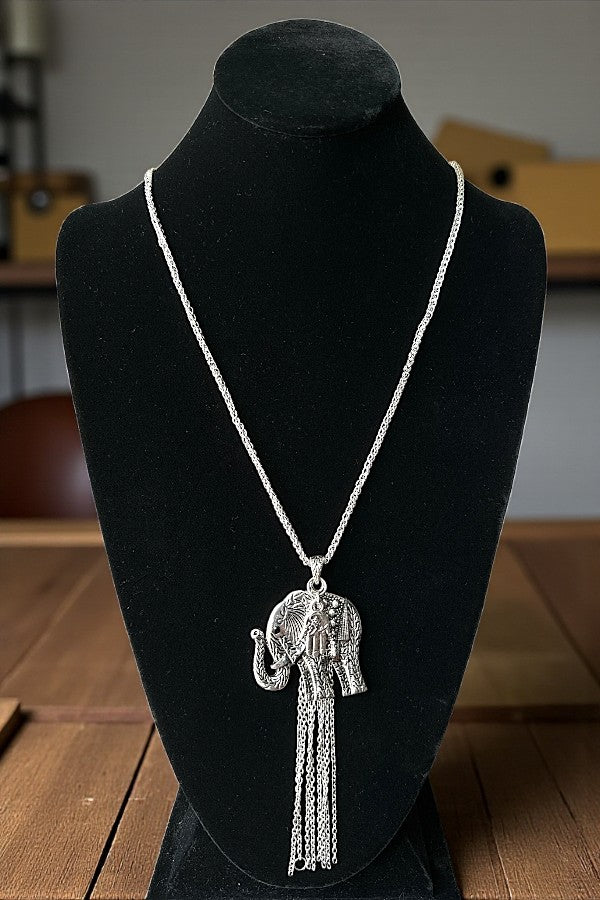 elephant, hamsa, chain tassel, elongated, long necklace, tribal,