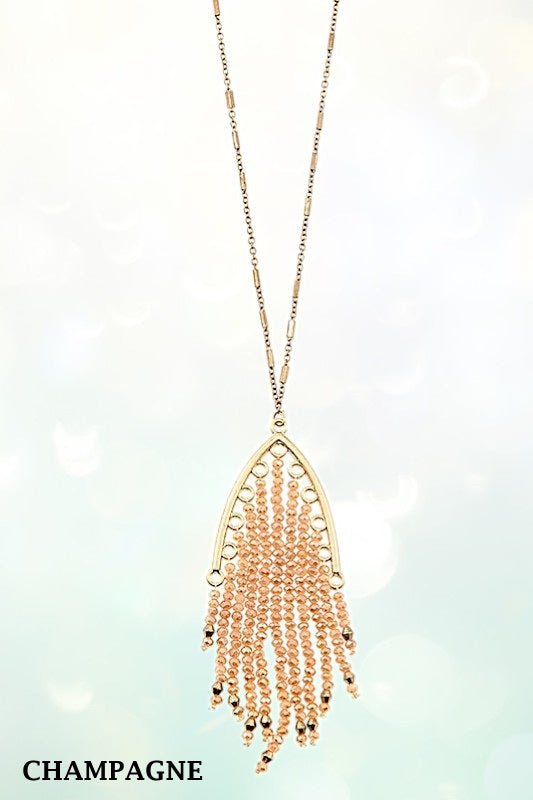 ELONGATED FRINGE BEAD PENDANT NECKLACE AND BEAD LINK DANGLE EARRING SET , APPROX LENGTH: 30"