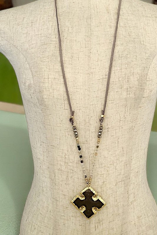 cord, bead, beaded, stone pendant, stone, long necklace, elongated, ,