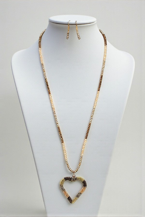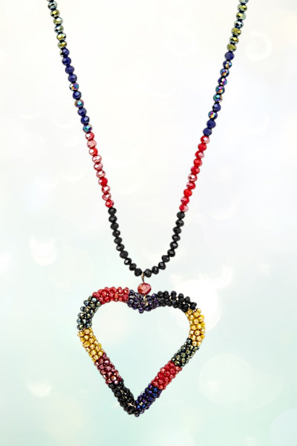 GLASS BEAD HEART PENDANT BEADED NECKLACE SET