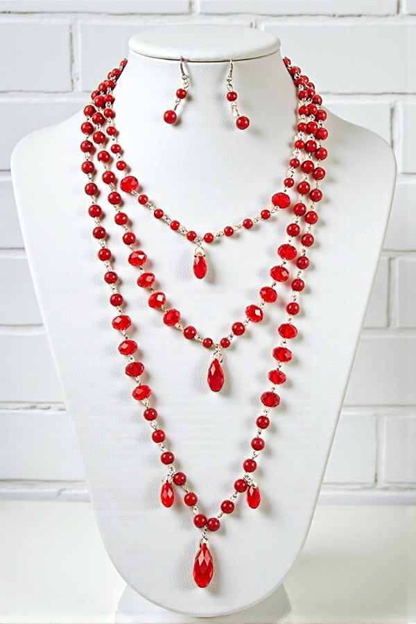 LAYERED FACETED BEAD STATEMENT NECKLACE AND EARRING SET