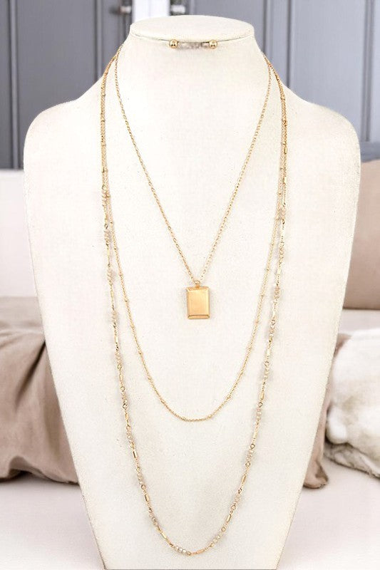 layered, bead, chain, necklace earring set, beaded, pendant,