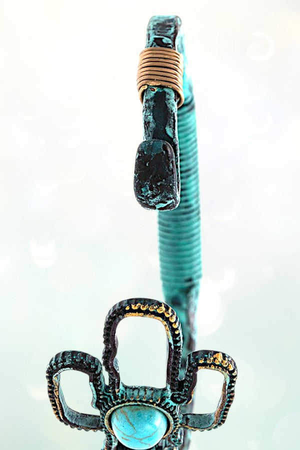 tq, gem, gem accent, turquoise, cactus, western, bangle, cowgirl, burnished, cut out, bangle,