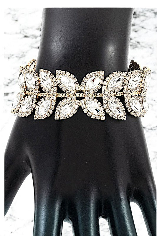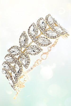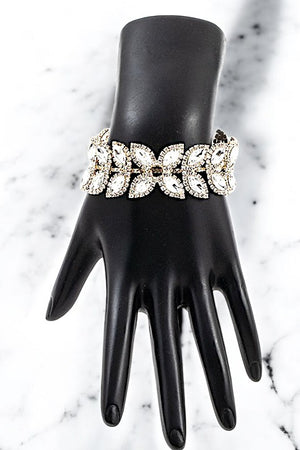 Leaf Crystal Chain Link Bracelet , Clasp Closure, Elegant Chain Link Bracelet