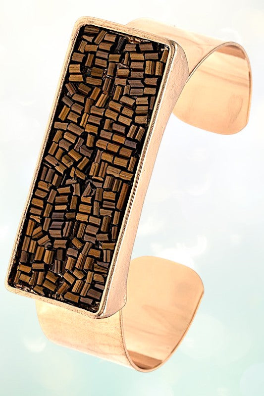SEED BEAD BAR ACCENT CUFF BRACELET, APPROX DIAMETER: 2 3/4"