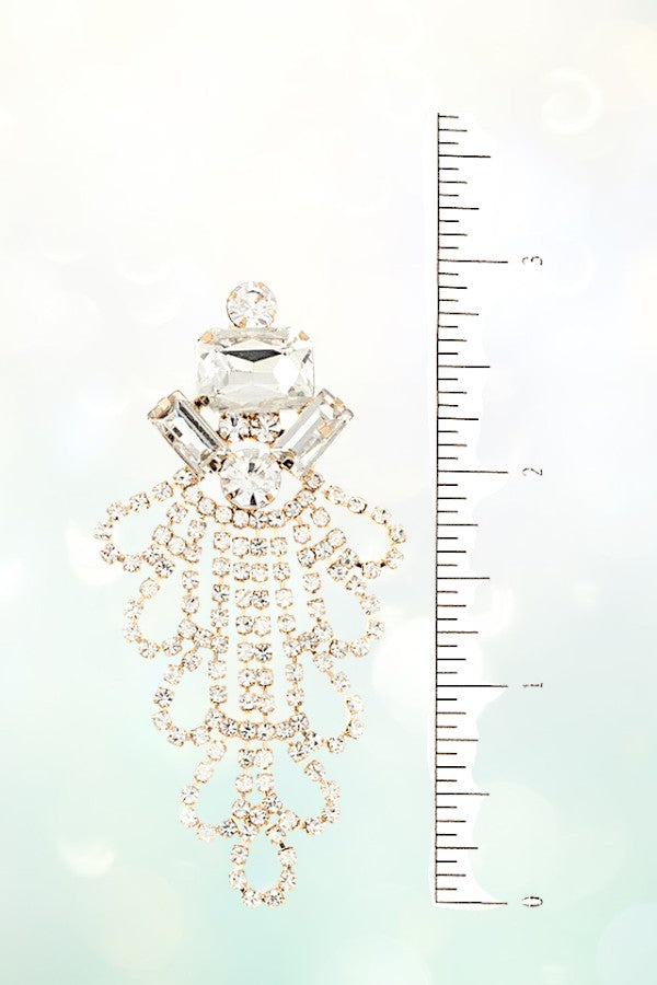 FACETED CRYSTAL GEM AND RHINESTONE DROP EARRING, APPROX SIZE: 3"