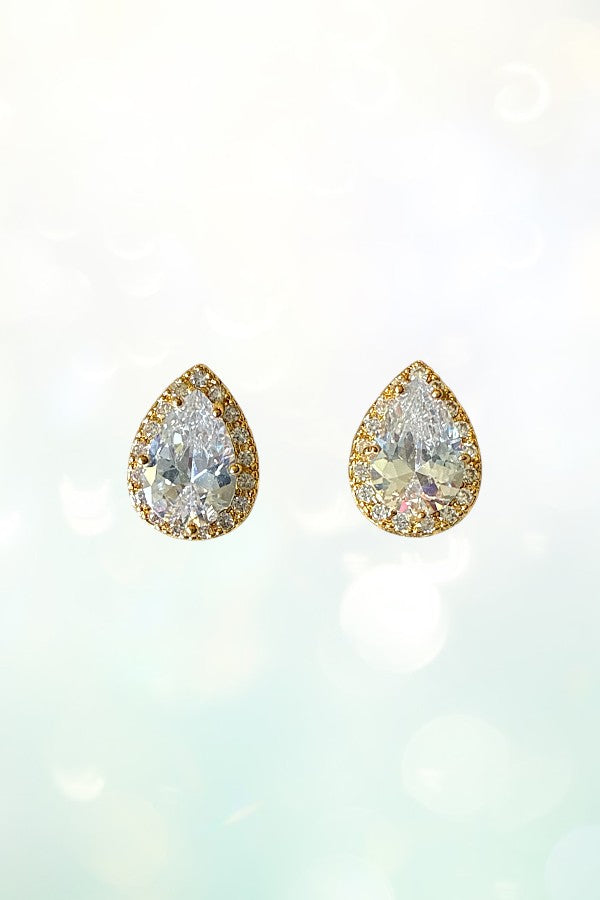 bridal, stud, cz, cubic, zirconia, gem, gemstone, teardrop gem, gem stud, cz stud, cubic stone, teardrop stud, framed gem, evening, party, special occasion, feminine, dainty,