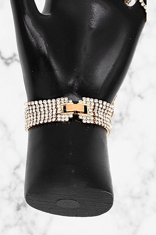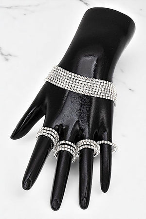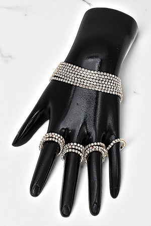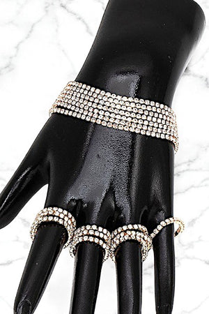 RHINESTONE PAVE BRACELET RING SET , 10 RINGS AND 1 BRACELET SET, BRACELET CLASP CLOSURE