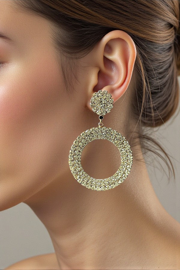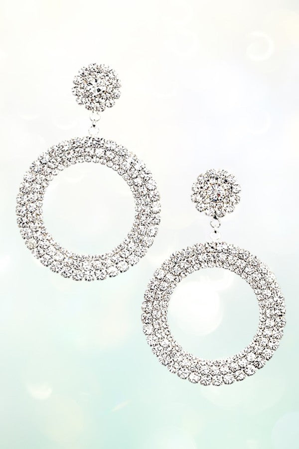 RHINESTONE PAVE ROUND POST RING DROP EARRING