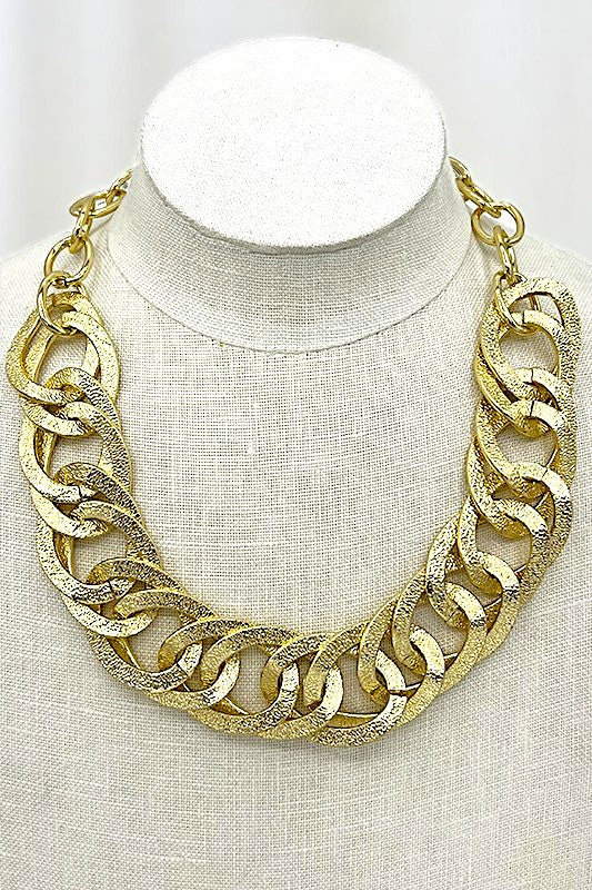 Textured Chain Link Necklace , Approx Length: 16" , Statement Necklace