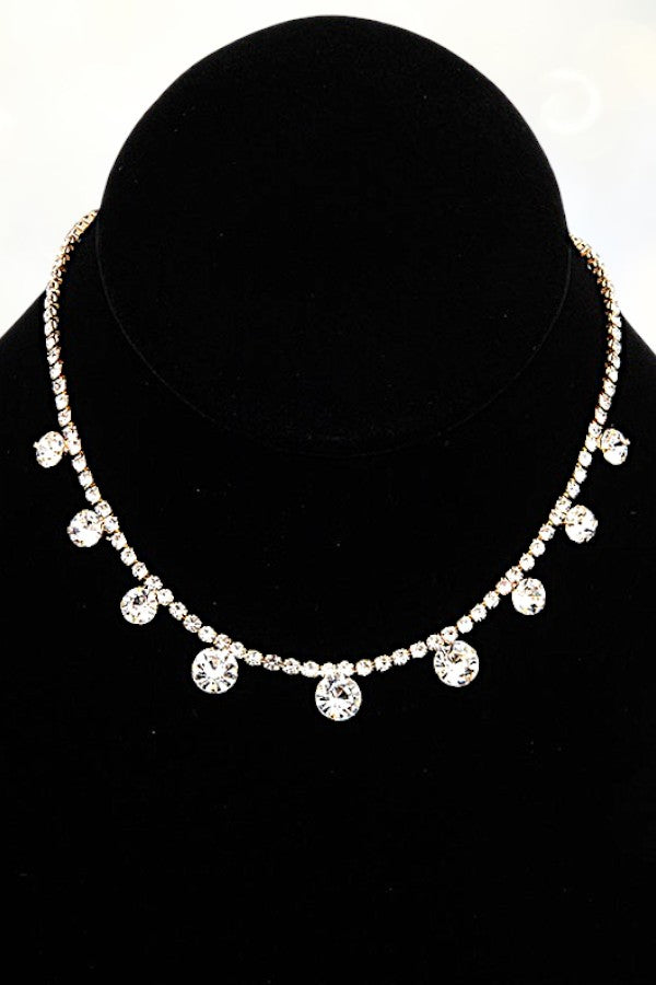 ROUND CRYSTAL GEM PAVE LAYERED COLLAR NECKLACES