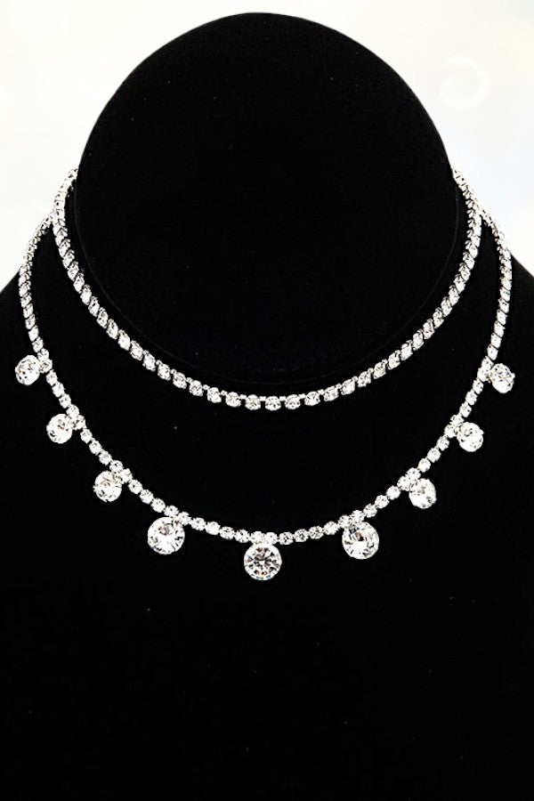 gem, gemstone gem pave, layered, bridal, party, evening, special occasion, 2 separate necklace, necklace set, elegant, luxury, rhinestone, crystal gem, crystal,