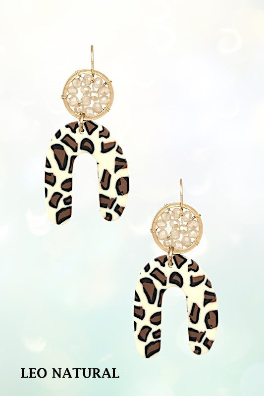 CLAY GLASS BEAD U DROP EARRING, APPROX SIZE: 2"