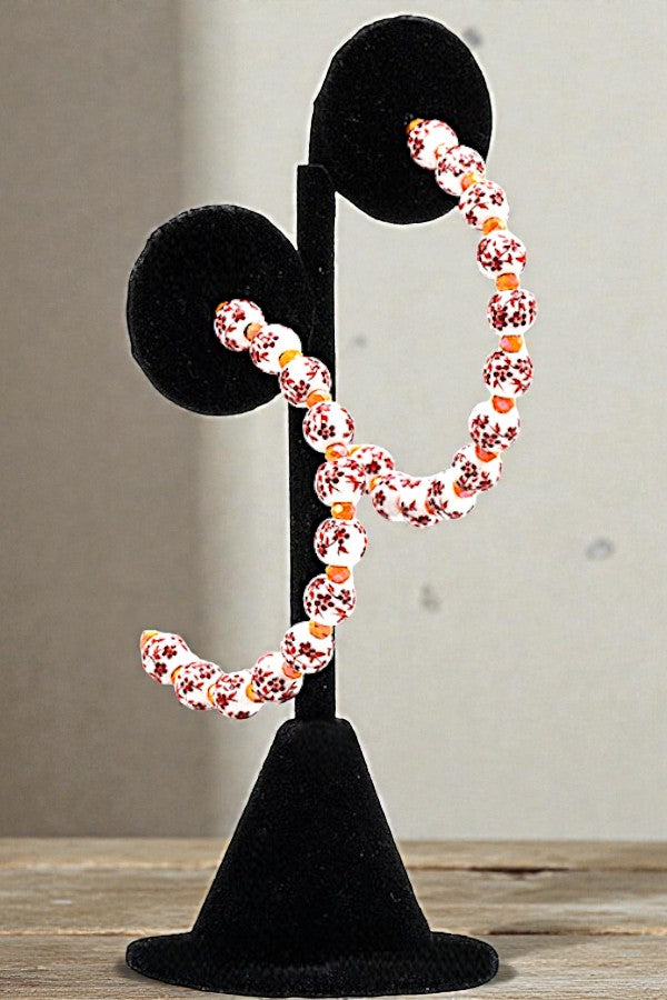 FLORAL BALL BEAD SEMI HOOP EARRING, APPROX SIZE: 2 1/2"