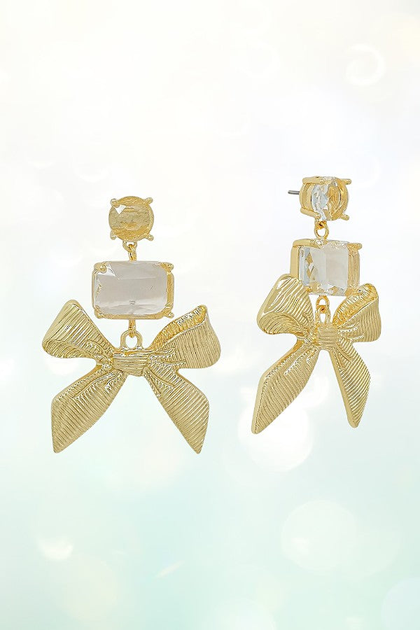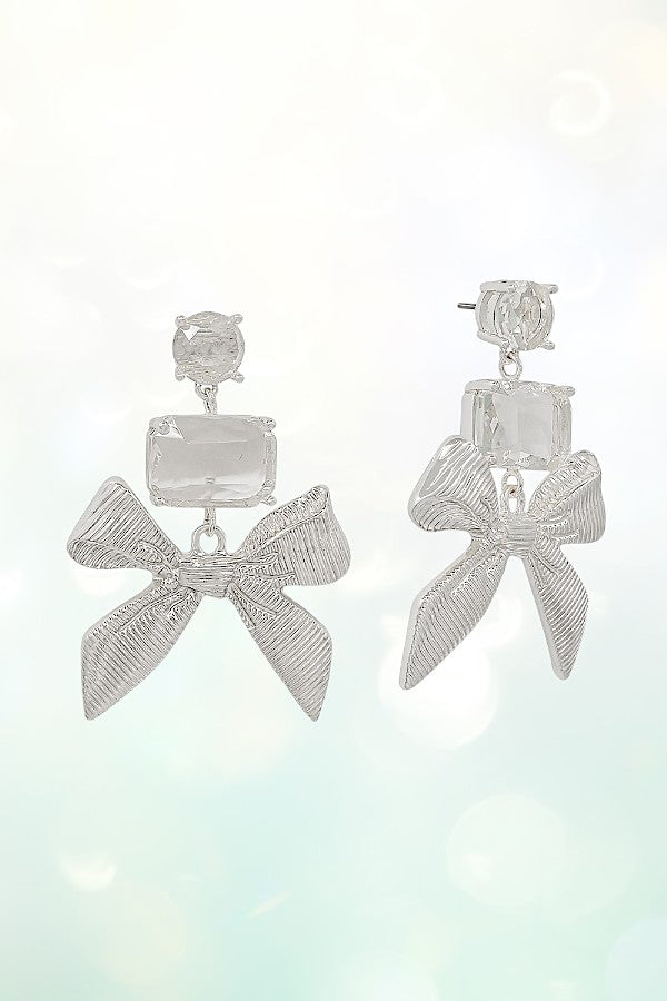ribbon, bow, textured, dangle, gem, clear gem, gemstone, bridal, evening,