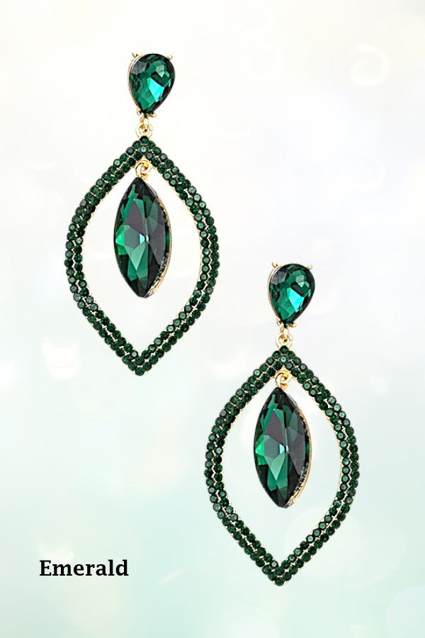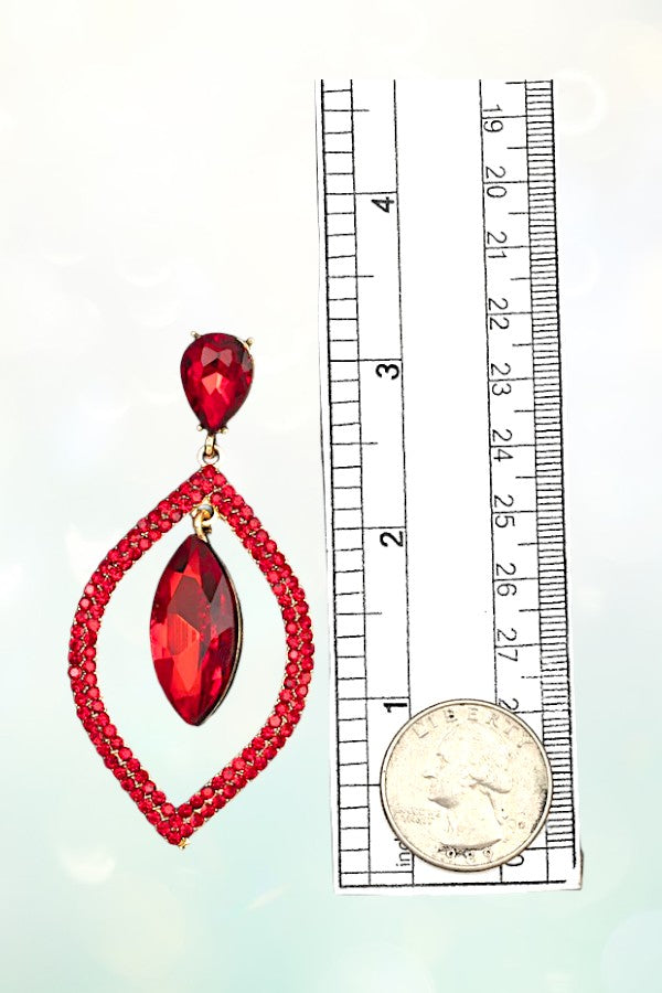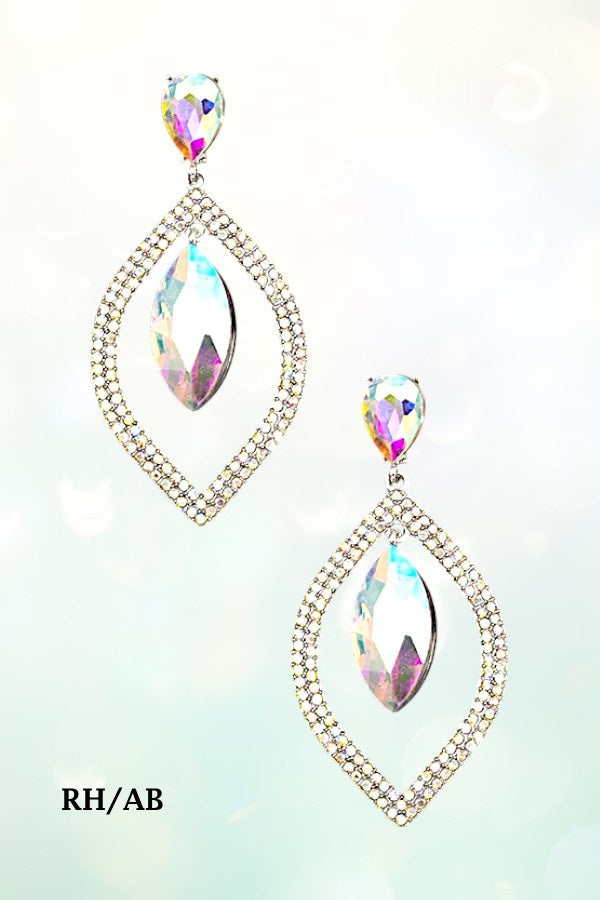 MARQUISE RHINESTONE FRAMED DROP EARRING , APPROX SIZE: 3"