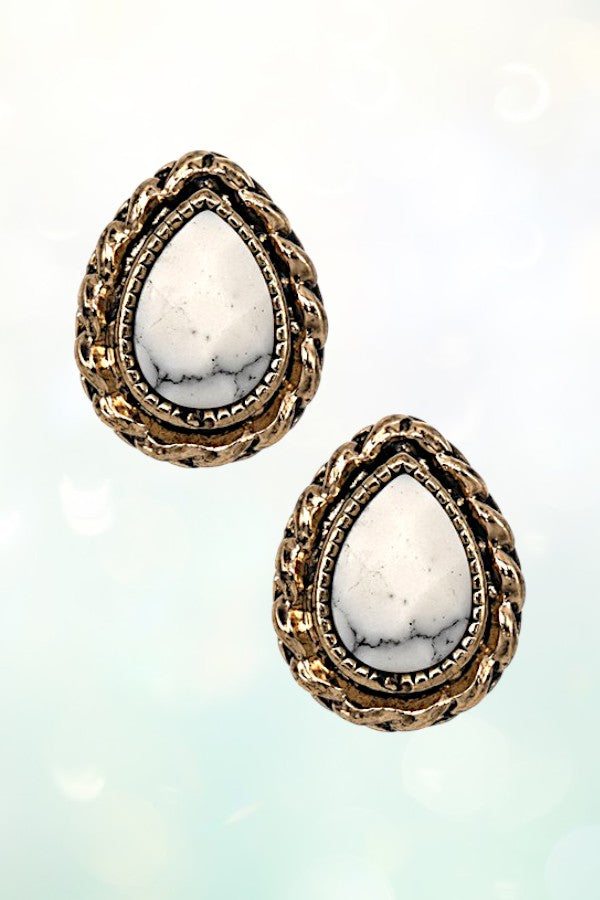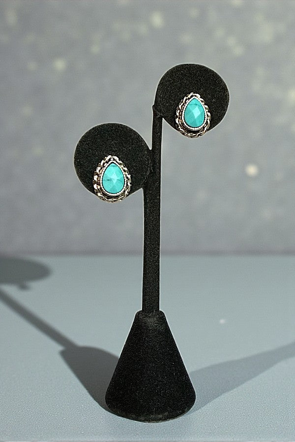 stone, faceted, tq, turquoise, gemstone, framed, braided, stud, antique rhodium, antique gold,