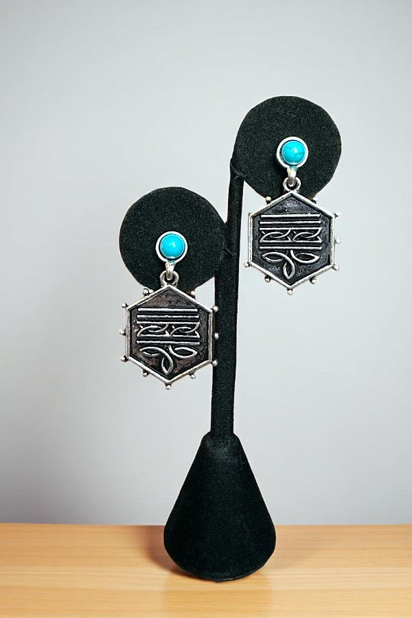 WESTERN BOOT STITCH HEXAGON DANGLE GEM POST EARRING, APPROX SIZE: 1 1/2"