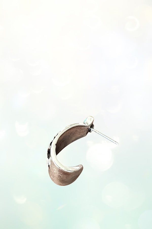 western, cowgirl, tq, turquoise, gem, gemstone, curled, hoop, semi hoop, boot, boot stitch, burnished silver,