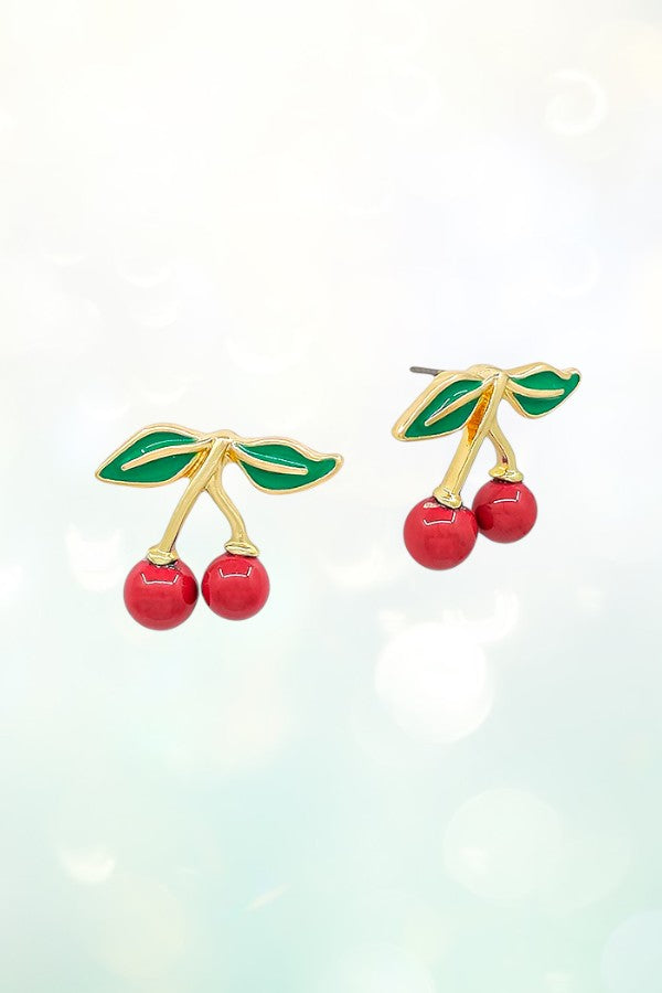 SMALL EPOXY CHERRY POST EARRING, APPROX SIZE: 5/8"