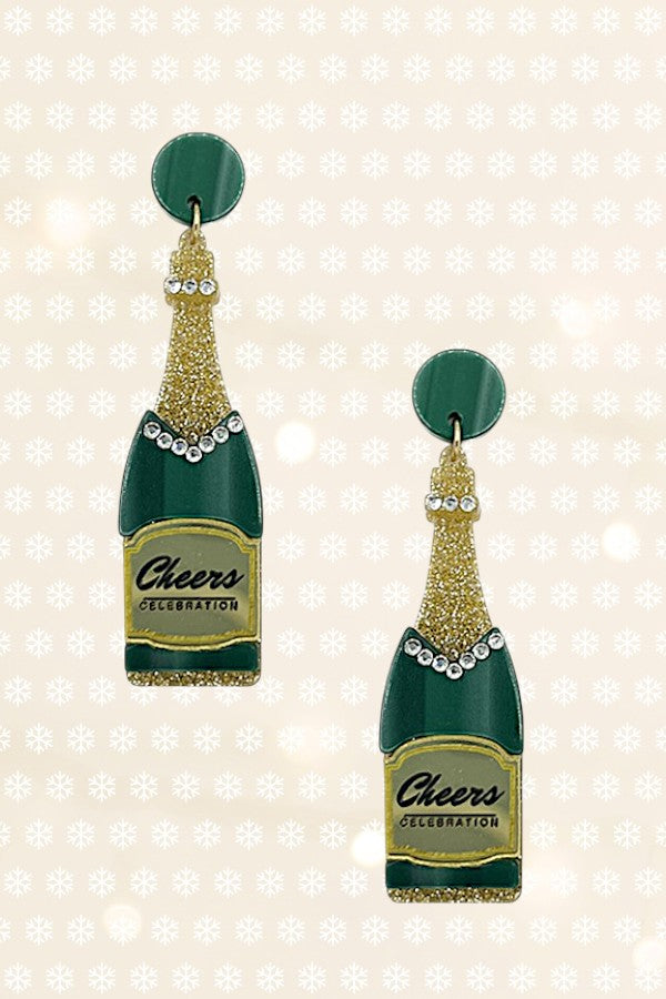 CHAMPAGNE BOTTLE ACRYLIC DANGLE EARRING, APPROX SIZE: 3"