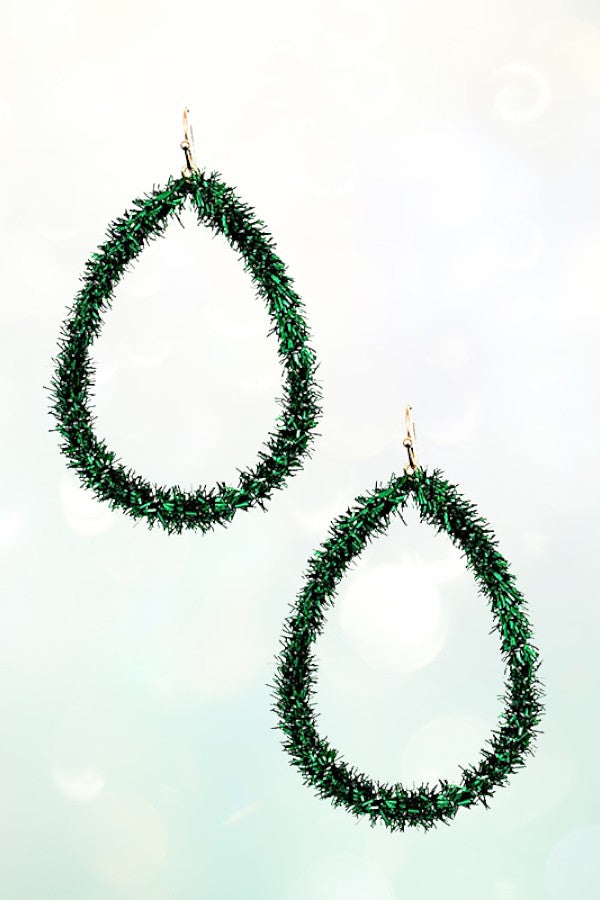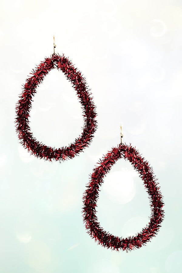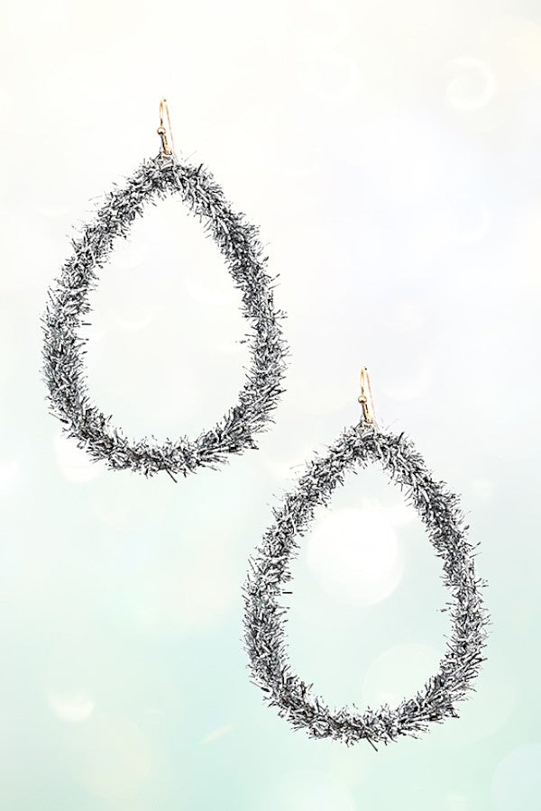 TEARDROP TINSEL EARRING , APPROX SIZE: 2 1/2"
