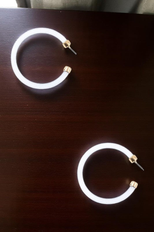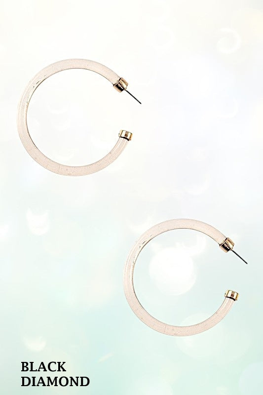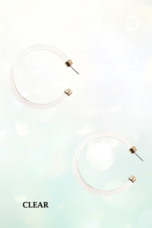 CLEAR COLOR TUBE SEMI HOOP EARRING, APPROX SIZE: 2 1/4"