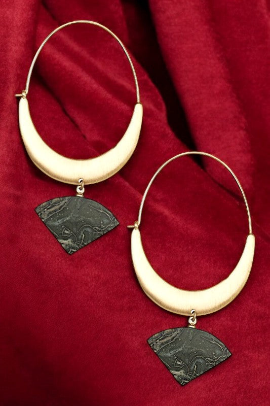 OVAL HOOP TRIANGLE GEM DANGLE EARRING , APPROX TOTAL SIZE: 3 1/2"