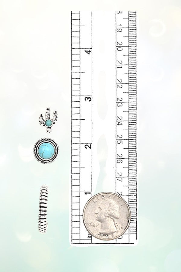 western, cowgirl, gem, gemstone, gem post, cactus, turquoise, tq, hoop, western hoop, earring set,