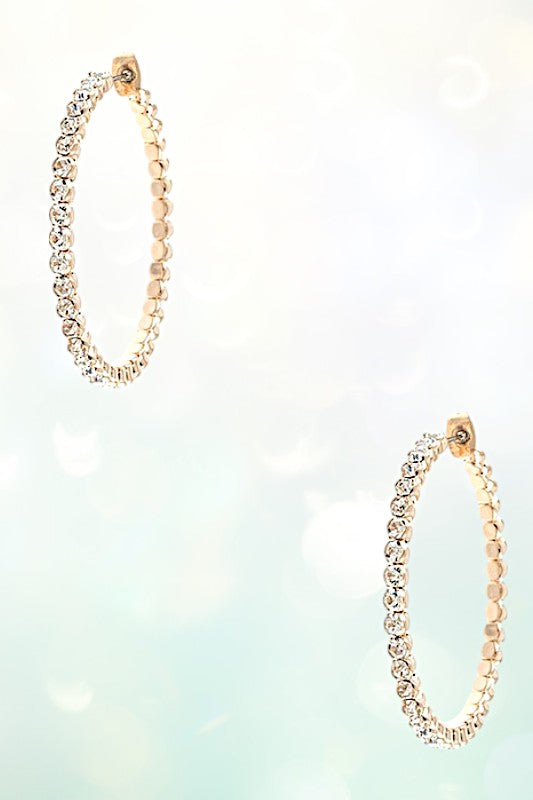 ROUND CRYSTAL GEM PAVE HOOP EARRING, APPROX DIAMETER: 1 1/2"