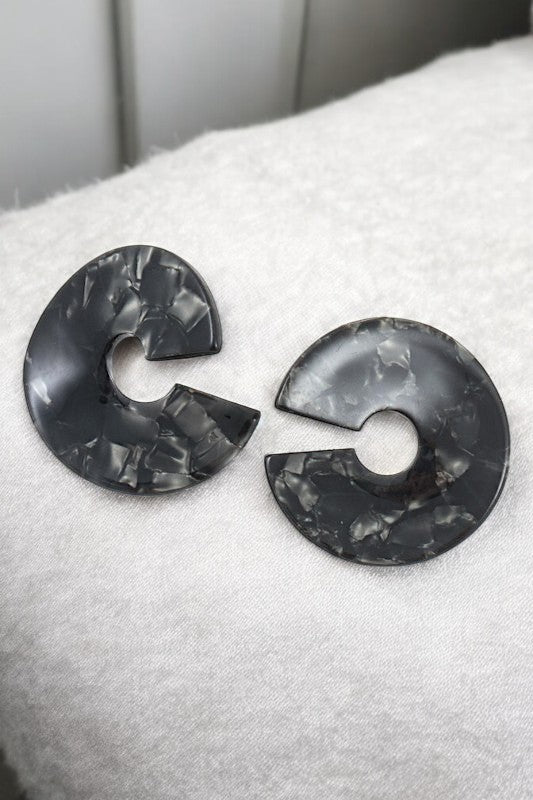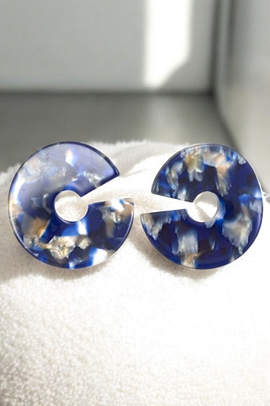 SEMI ROUND ACRYLIC WAVED POST EARRING , APPROX SIZE: 1 3/4"