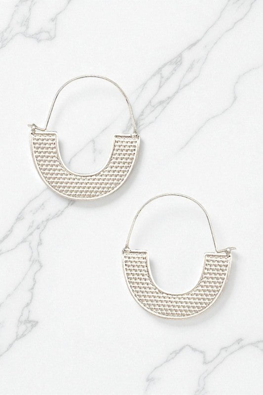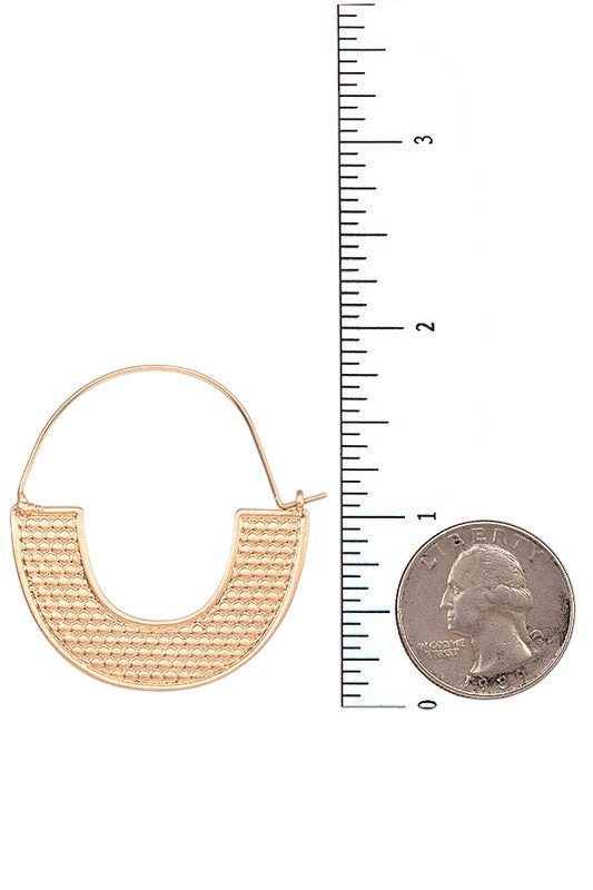 SEMI ROUND U ACCENT HOOP EARRING, APPROX SIZE: 1 3/4"