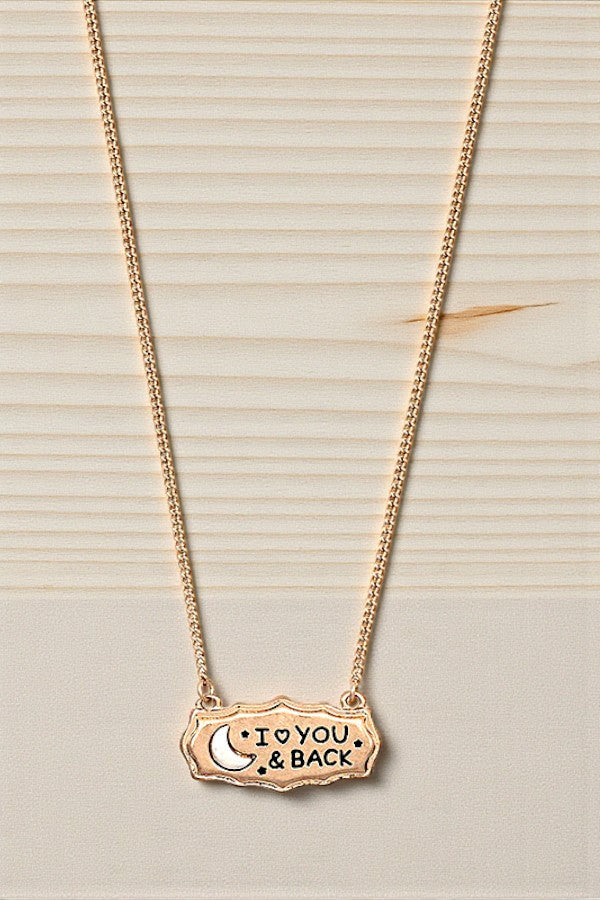 I LOVE YOU MESSAGE ETCHED PENDANT NECKLACE, APPROX LENGTH: 16" , MESSAGE: " I LOVE YOU TO THE MOON AND BACK"