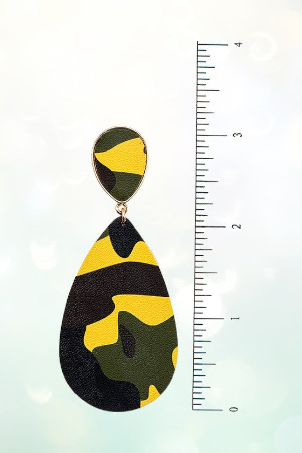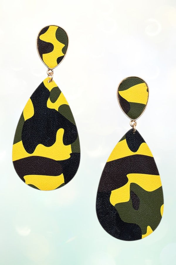 camouflage, camo, military, print, double drop, teardrop, camo print, camo earring, fashion earring, dangle,