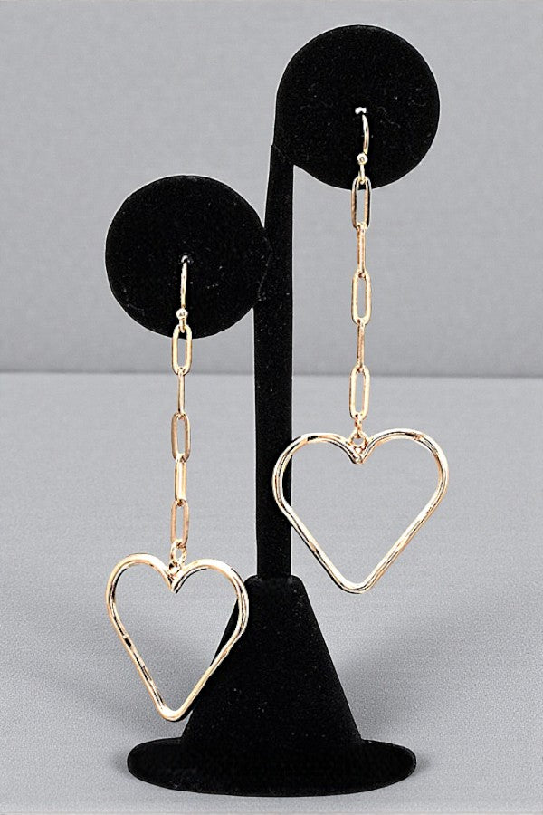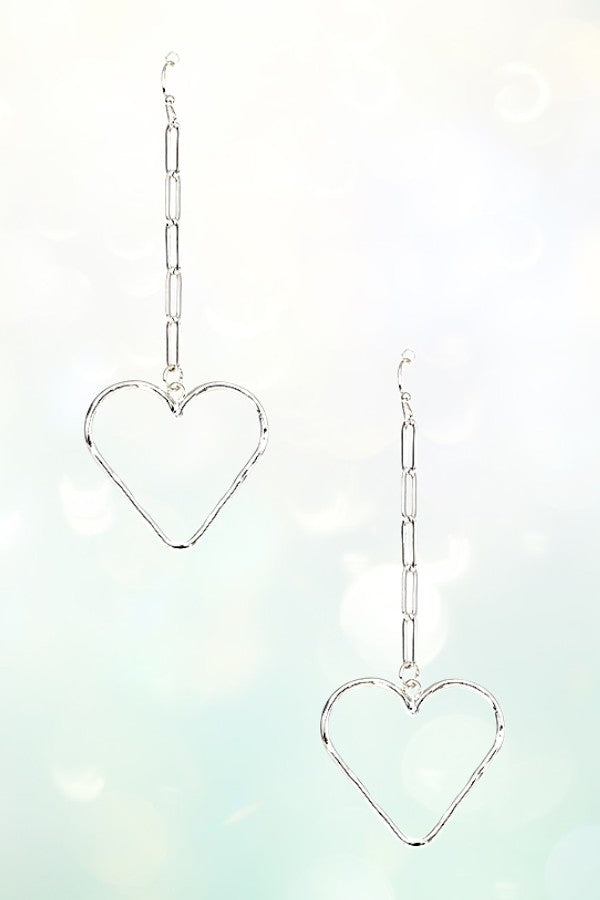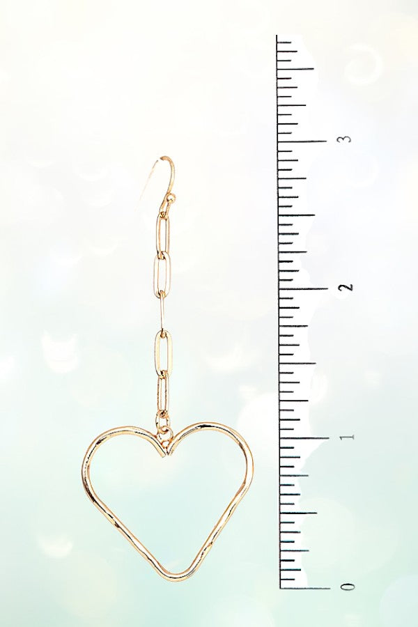 CHAIN HEART DANGLE EARRING , APPROX HEART SIZE: 1", APPROX TOTAL SIZE: 2 1/2"