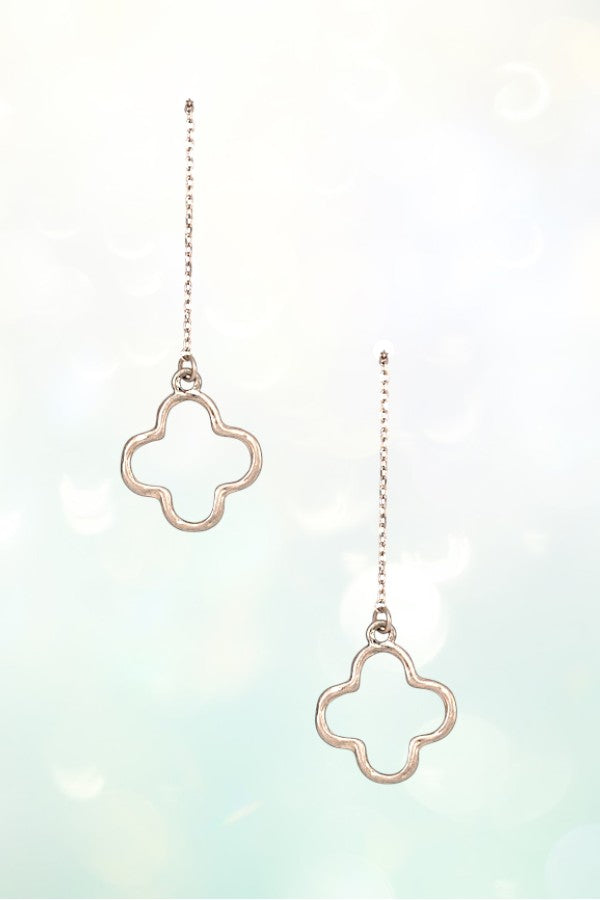clover, shape, clover cut out, cut out, wire, chain drop, chain dangle, four leaf clover, luck, lucky, worn gold, worn silver,