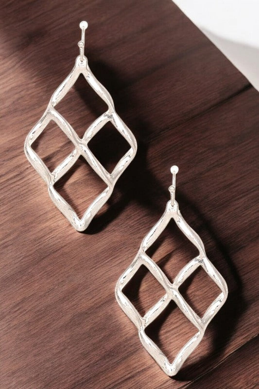 diamond, diamond shape, twist, dangle, worn gold, worn silver,
