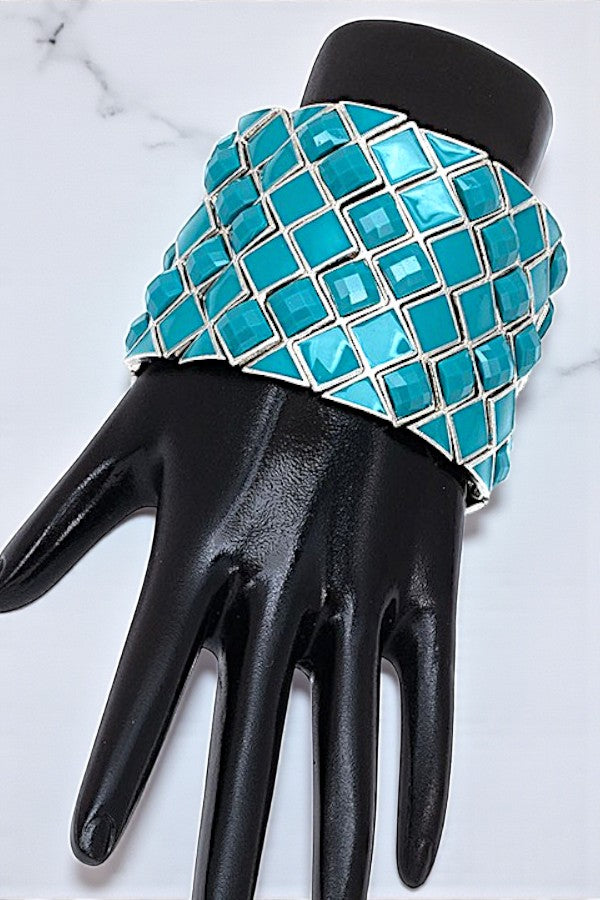 FACETED DIAMOND LINK STRETCH BRACELET , STATEMENT BRACELET