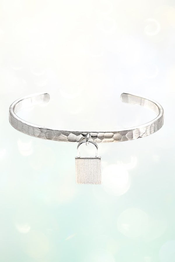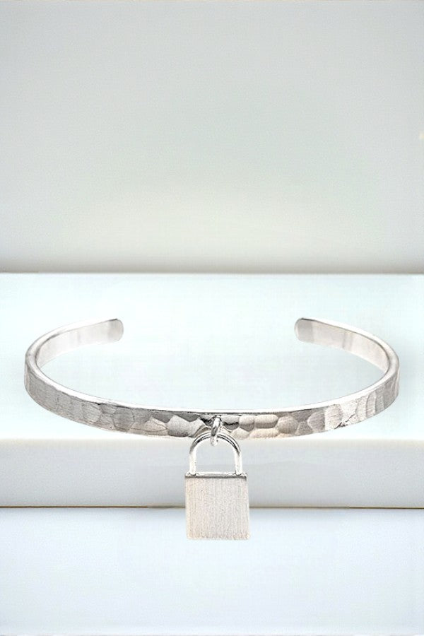 LOCK CHARM HAMMERED CUFF BRACELET