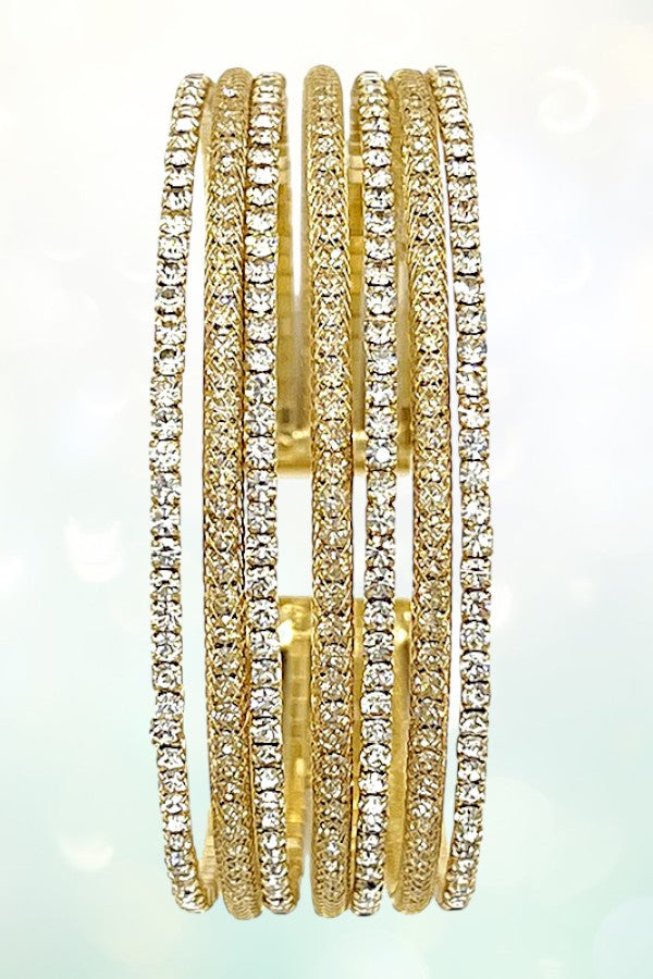 RHINESTONE PAVE MULTI ROW FLEX CUFF BRACELET