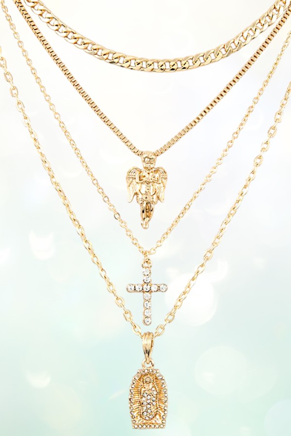 layered, chain, pendant, religious, inspirational, cross, virgin mary, angel, necklace earring set,