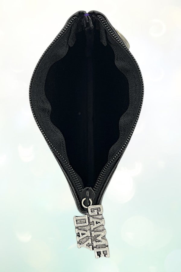 PURPLE GAME DAY COIN PURSE, LENGTH: 4 1/2", WIDTH: 3 1/4"