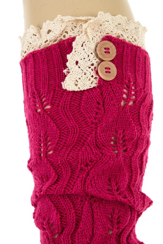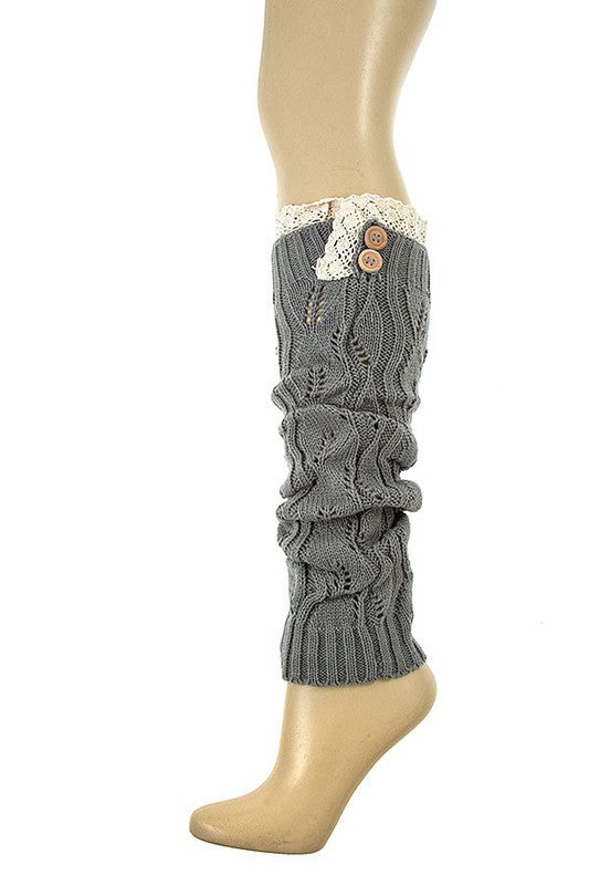 Crochet Lace Top Button Accent Legwarmer Non Functional Button