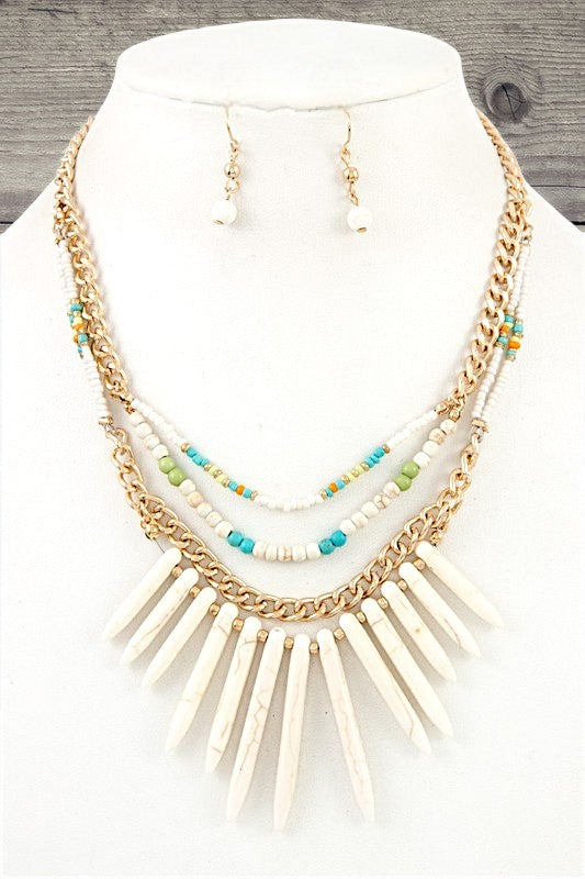statement, western, cowgirl, tribal, bead, gem, fringe, necklace earring set,