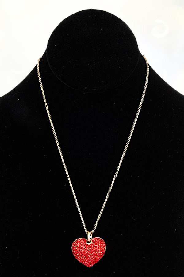 heart, love, rhinestone, pave, puffy, valentine, pendant, red heart,