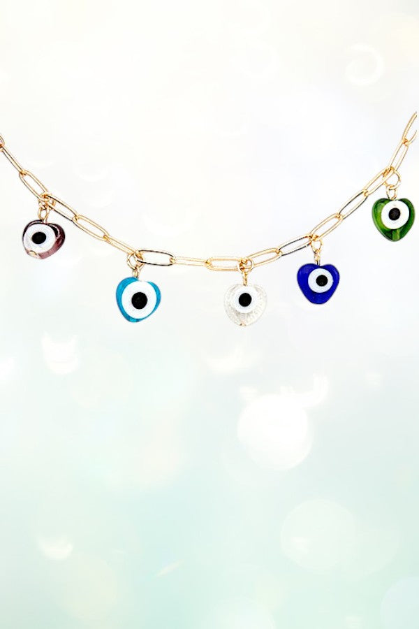 HEART SHAPED EVIL EYE CHARMS NECKLACE
