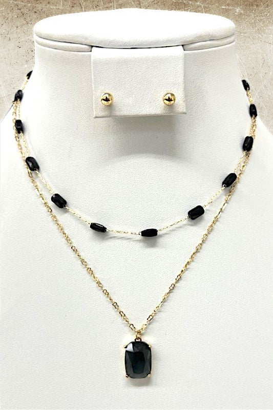 Gemstone Pendant Layered Necklace and Ball Post Earring Set, Approx Length: 12" - 16" , Single Clasp Closure